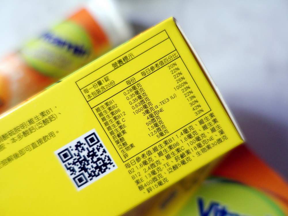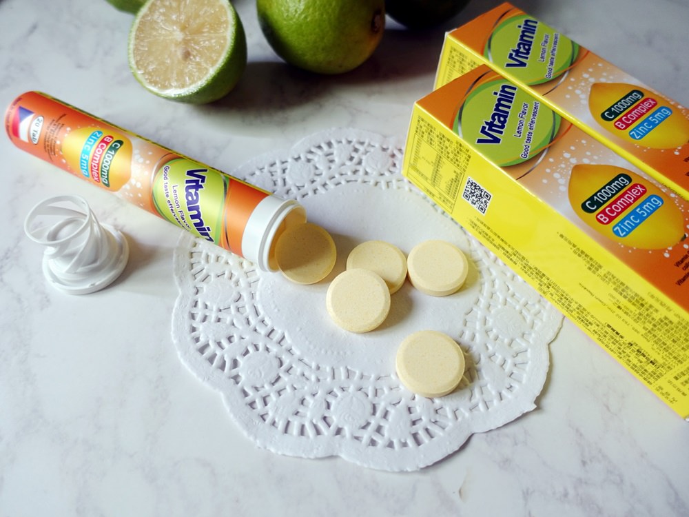 健康卓越維他C+鋅+B群發泡錠單罐含20錠,只有檸檬口味,發泡錠大小大概就跟十元銅板差不多大。
